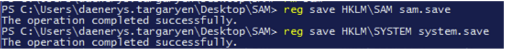 Once these hives have been retrieved, the secretsdump tool can be used to decrypt the SAM and access the NTLM hashes: