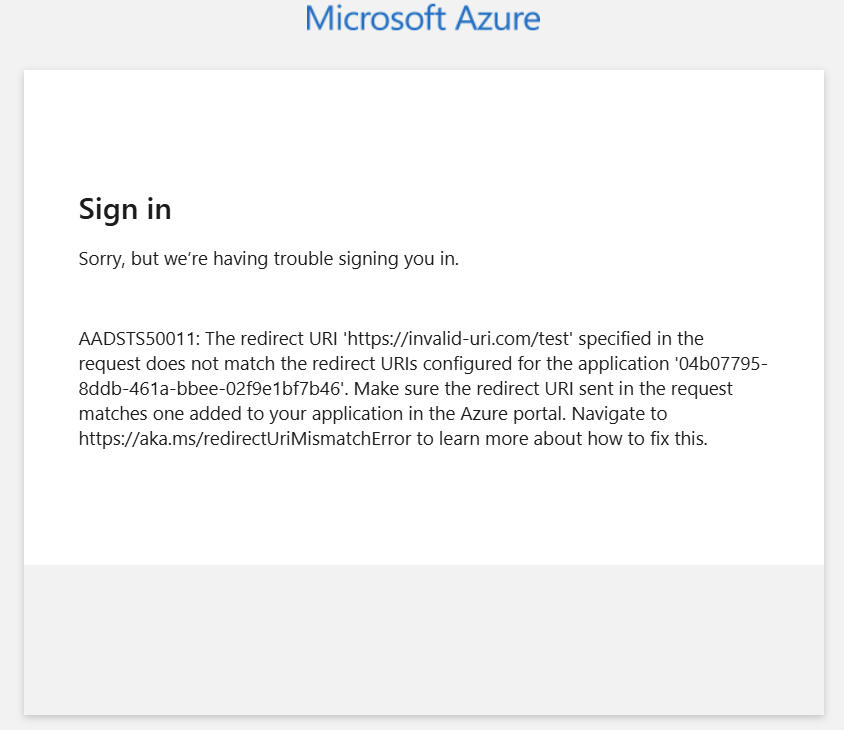 The trick, however, lies in selecting a return URI that is valid (meaning allowed by the application) but still returns a 404 “This site can’t be reached” message to the victim. Each application maintains its own list of permitted return URIs that can be chosen. If the adversary selects an invalid return URI, the victim will instead encounter an error similar to the following.