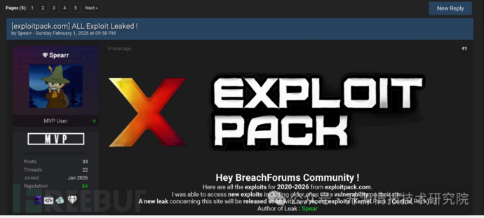 泄露者的话述:2020-2026 年的所有漏洞利用程序。我利用他们网站上的一个漏洞,访问了包括一些旧漏洞在内的新漏洞利用程序。关于该网站的最新泄露信息即将发布,其中包含最新的漏洞利用程序(内核包/控制包) ! :]Author of Leak : Spearexploitpack是荷兰 Exploit Pack 公司运营的商业化渗透测试与漏洞利用框架官网,面向红队与渗透测试人员,提供企业级漏洞利用、载荷生成、后渗透与 C2 等一体化攻防工具链,2007 年启动,现总部位于荷兰马斯特里赫特。以下是核心信息: