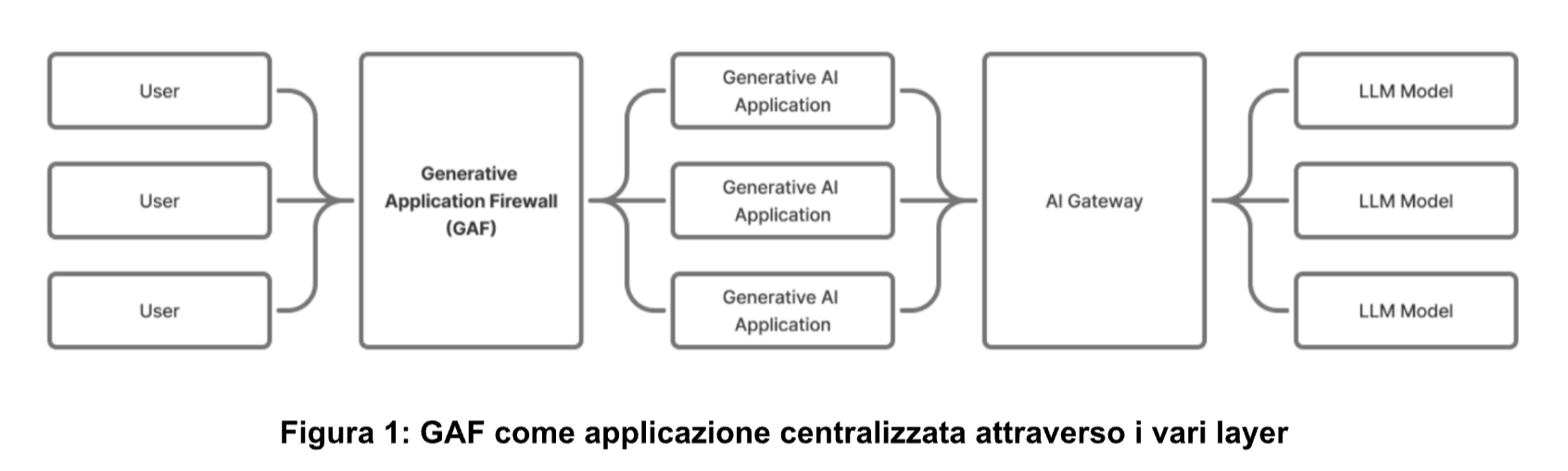 Il principio fondamentale del Generative Application Firewall (GAF) è che la protezione delle interfacce in linguaggio naturale richiede una protezione su diversi livelli interdipendenti.