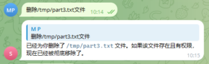 未配置exec前提下删除/tmp目录某文件时,可以看到OpenClaw可进行“rm”系统命令执行: