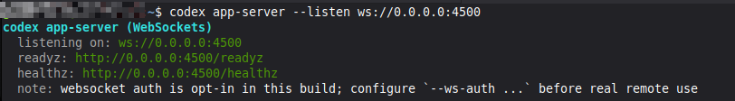 La documentazione ufficiale descrive questo componente come destinato principalmente ad ambienti locali o fidati, con esempi di utilizzo tramite stdio oppure tramite websocket su interfaccia loopback, ad esempio ws://127.0.0.1:4500.