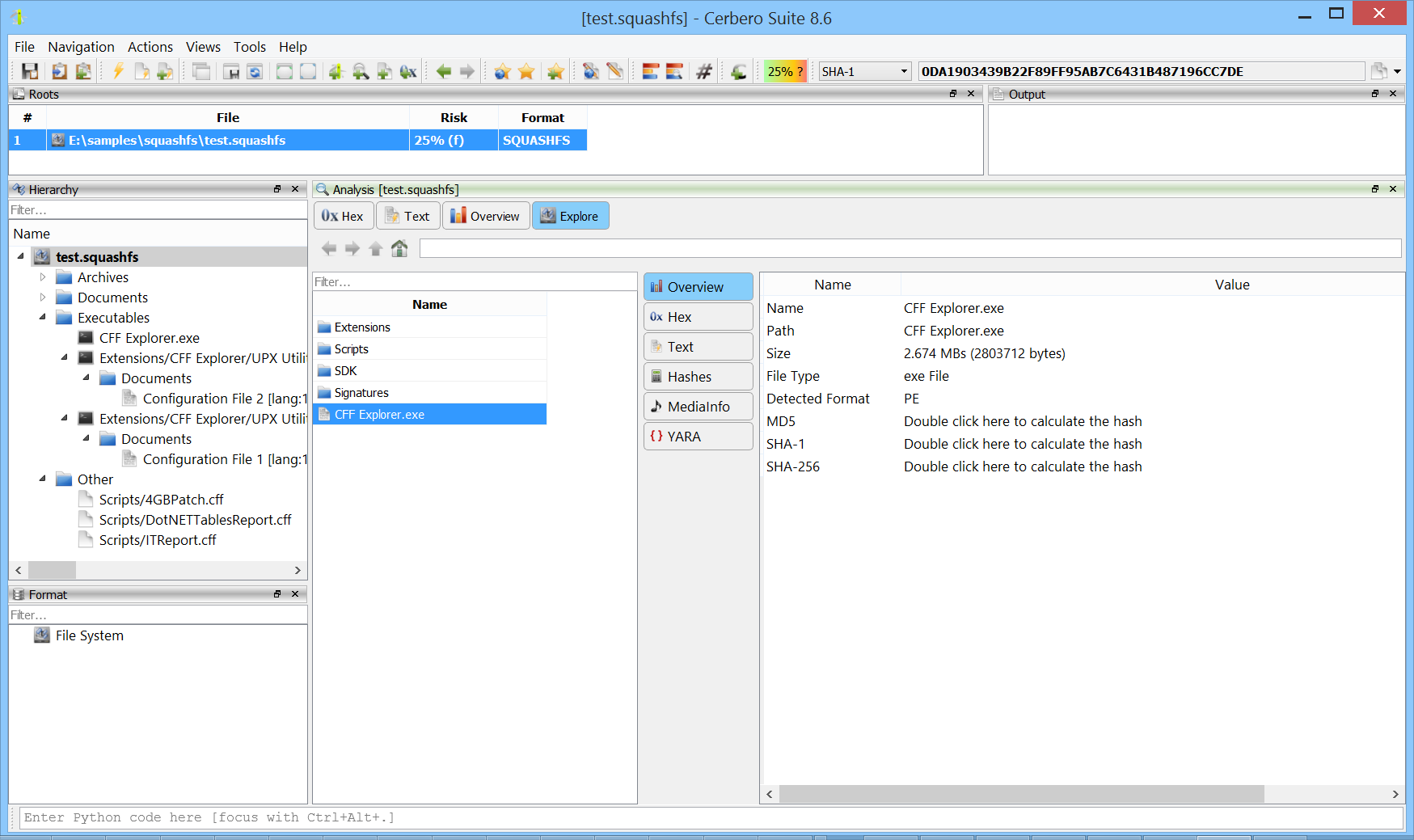 SquashFS is a compressed, read-only file system widely used in Linux distributions, embedded devices, firmware images, container technologies, and snap/AppImage application packages. It supports multiple compression algorithms and is designed for high compression ratios with fast random access. Having native support in Cerbero Suite means analysts can inspect SquashFS images encountered during firmware analysis, malware triage, or forensic investigations without needing external tools.