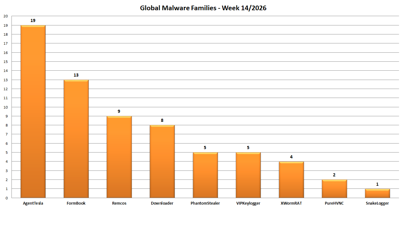 The week was characterized by Password Stealer of the Families: FormBook, Remcos ,VIPKeylogger and XWormRAT.
