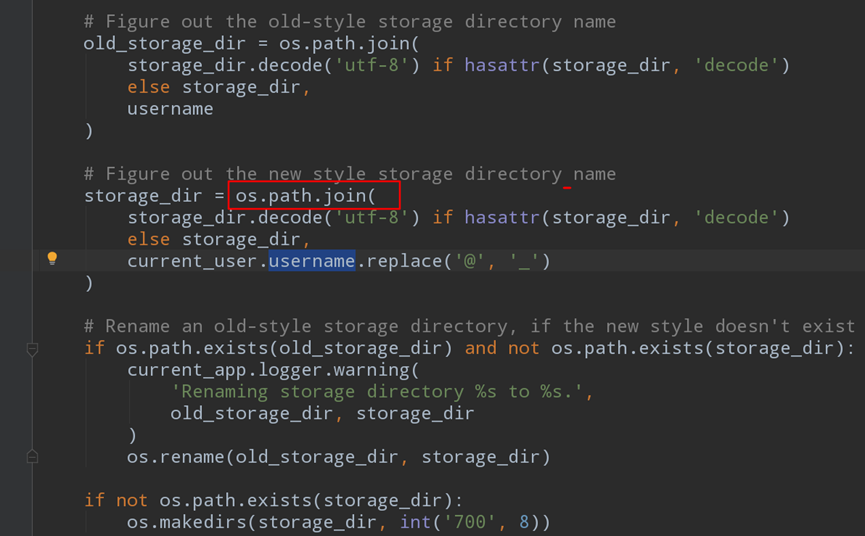 程序使用os.path.json方法将源存储目录和username组合形成新的存储目录,看到这个函数基本就稳了。