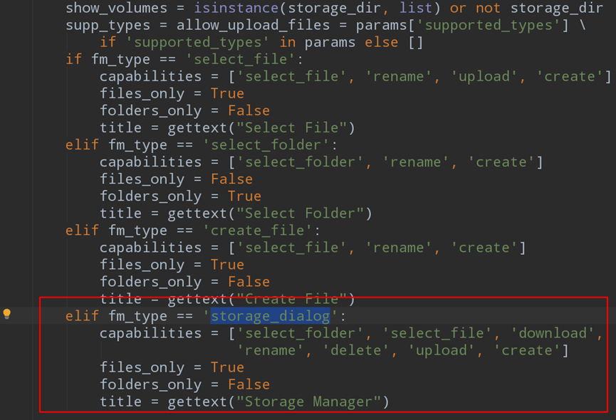访问后发现只能遍历无法下载?不存在的一切只是前端校验罢了: 从后端找到遍历文件模式选择接口,只需要将dialog_type的类型修改为storage_dialog即可。