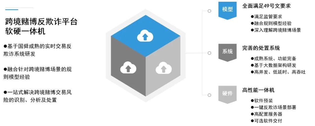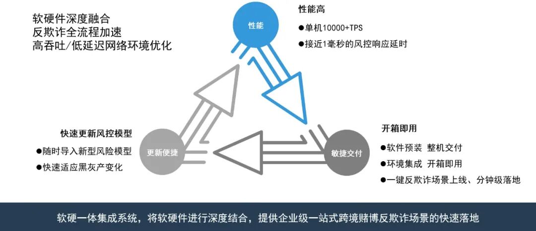 3. 软硬一体集成系统,将软硬件进行深度结合,提供企业级一站式跨境赌博反欺诈场景的快速落地。