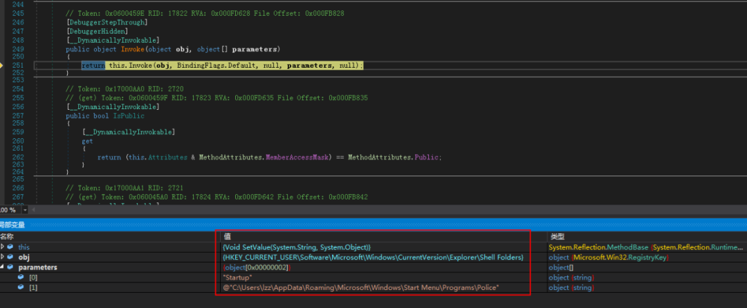 修改注册表HKCU\Software\Microsoft\Windows\CurrentVersion\Explorer\Shell Folders的Startup键值为%AppData%\Roaming\Microsoft\Windows\Start Menu\Programs\Police,实现持久化:
