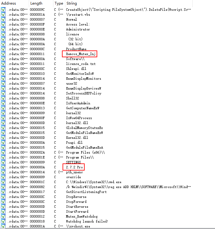 该文件是一个由C++编写的远控程序,从反编译后的字符串可以看出是Remcos家族的远控,版本为最新的2.7.2 Pro: