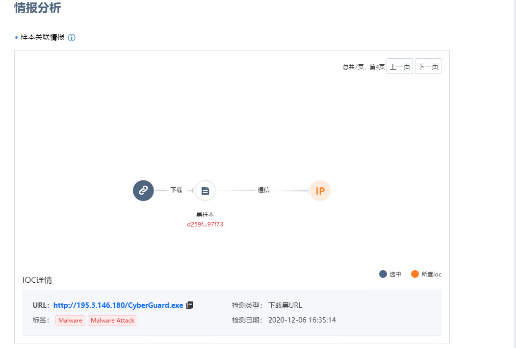 通过威胁情报中心对该远控样本的C&C服务器地址89.39.107.61进行关联情报分析,查看到该远控样本最初是通过URL:195[.]3[.]146[.]180/CyberGuard.exe进行下载到本地;
