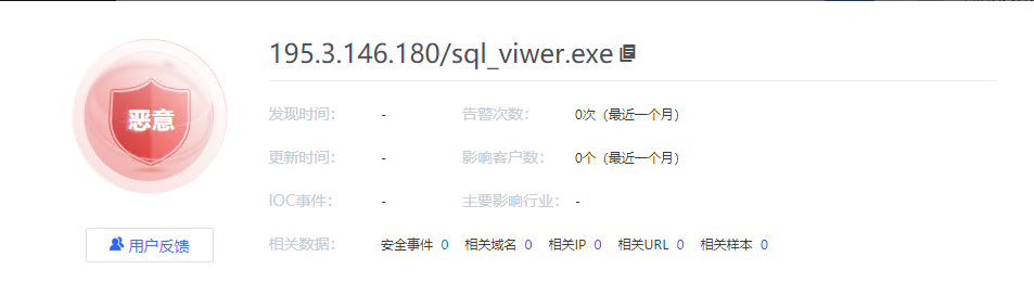 再结合云端情报监控,捕获到该IP地址在2020年12月5日又更新了上传了恶意样本server.exe,使用的下载url地址有195[.]3[.]146[.]180/server.exe、195[.]3[.]146[.]180/sql_viwer.exe等,推测该IP为攻击者持续更新攻击武器的服务器地址,且攻击者主要通过扫描数据库弱口令或漏洞进行入侵;