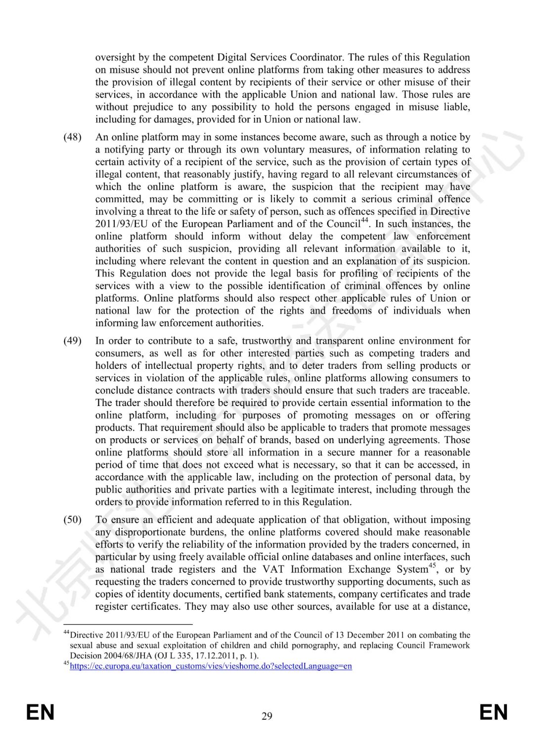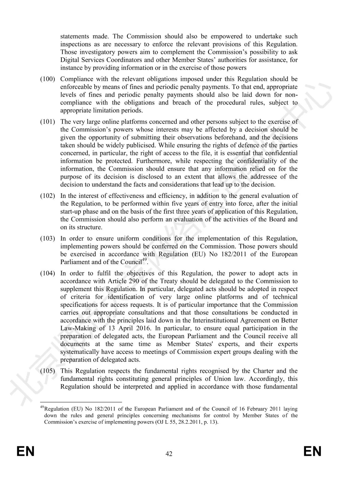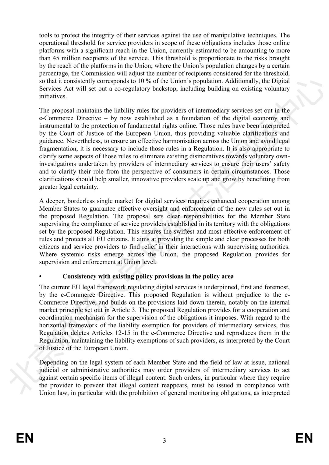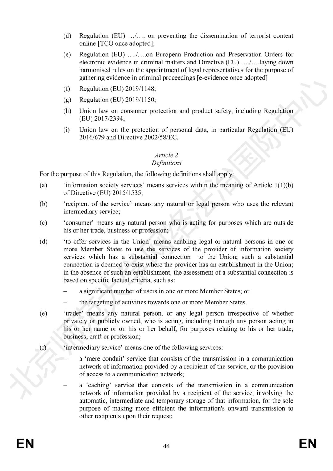 欧盟委员会于2020年12月15日公布了数字服务法案(DSA)和数字市场法案(DMA)的最终提案,这两项法案构成了一套旨在监管数字服务的规则,包括在欧盟运营的社交媒体、在线市场和其他在线平台。新规定旨在促进创新,通过允许小公司和初创企业方便地接触客户来支持它们扩大规模,以及禁止已经成为或可能成为单一市场把关人的在线平台施加不公平的条件。