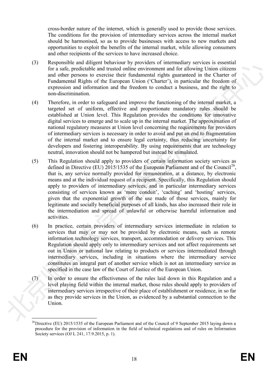 【按语】随着数字服务法案(DSA)和数字市场法案(DMA)浮出水面,欧盟有关平台责任的法律框架日益清晰,中心团队完成法案中文译本并专文深度分析,敬请关注。——吴沈括,北京师范大学网络法治国际中心执行主任、博导、中国互联网协会研究中心秘书长。