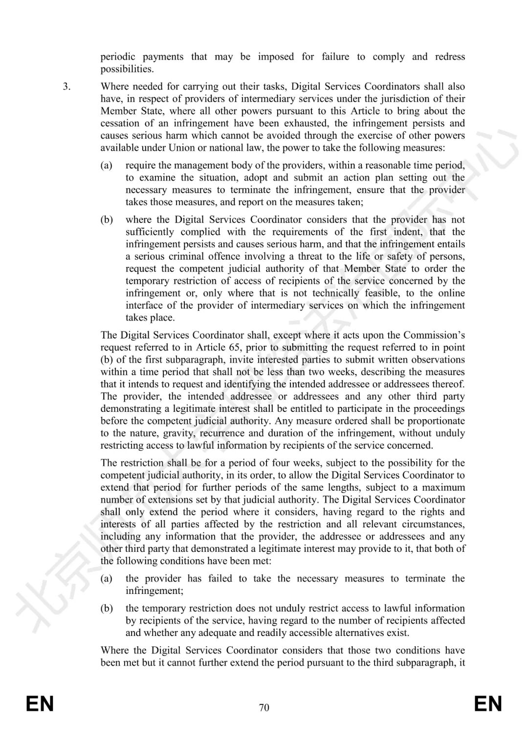 此外,DMA的重点是禁止在线平台把关人的不公平行为,同时提供执行机制,,通过定义量化阈值来确定假定的把关人,禁止不公平的做法,并对不遵守此类规则的行为实施制裁。