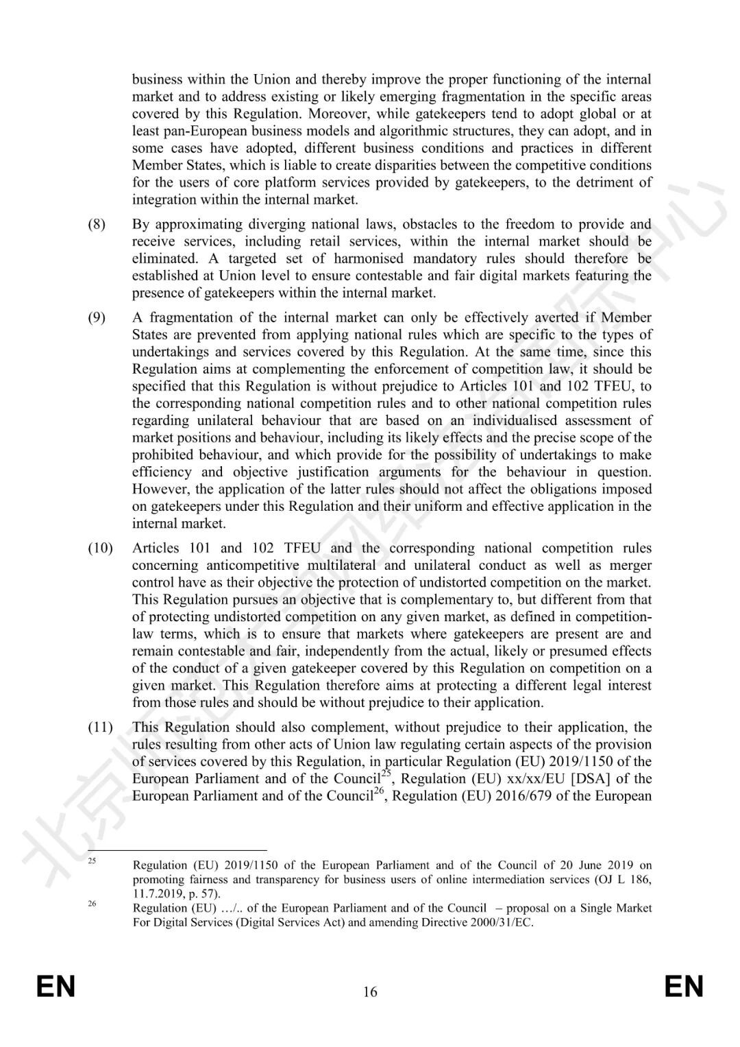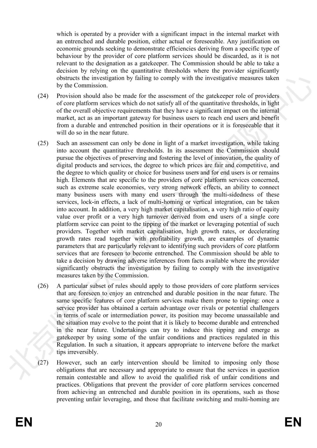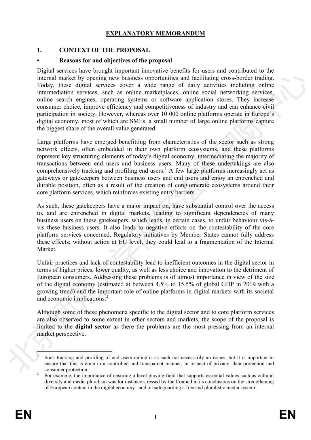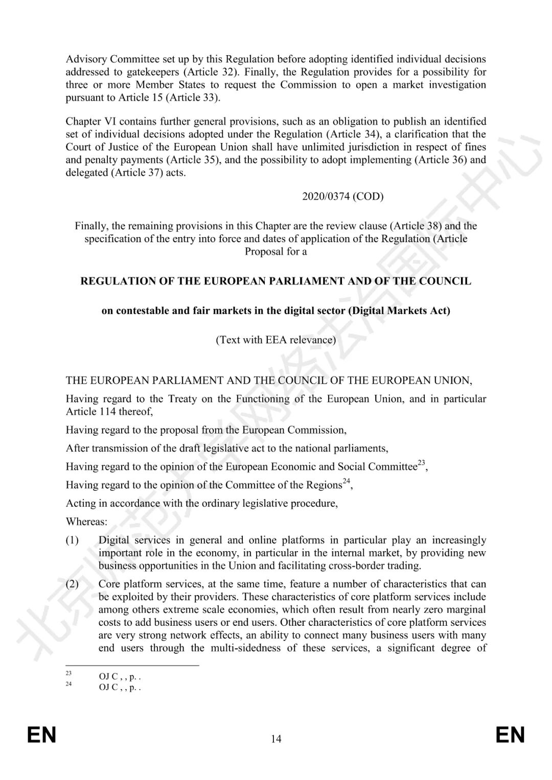 欧盟委员会2020年《数字市场法案》(提案)全文