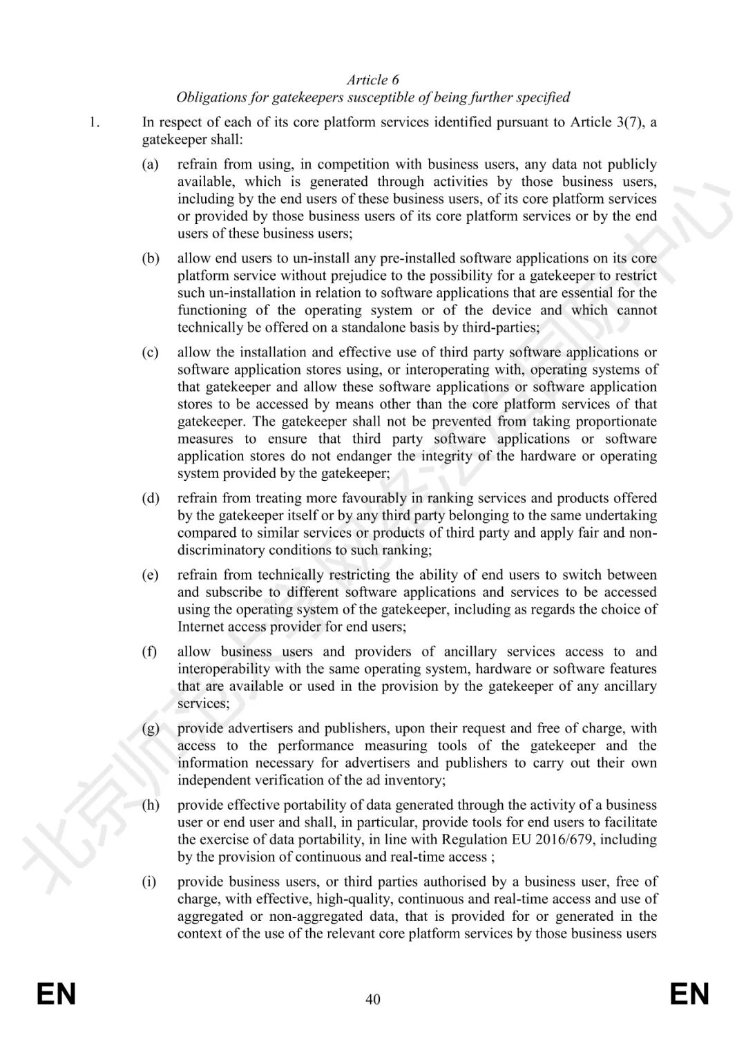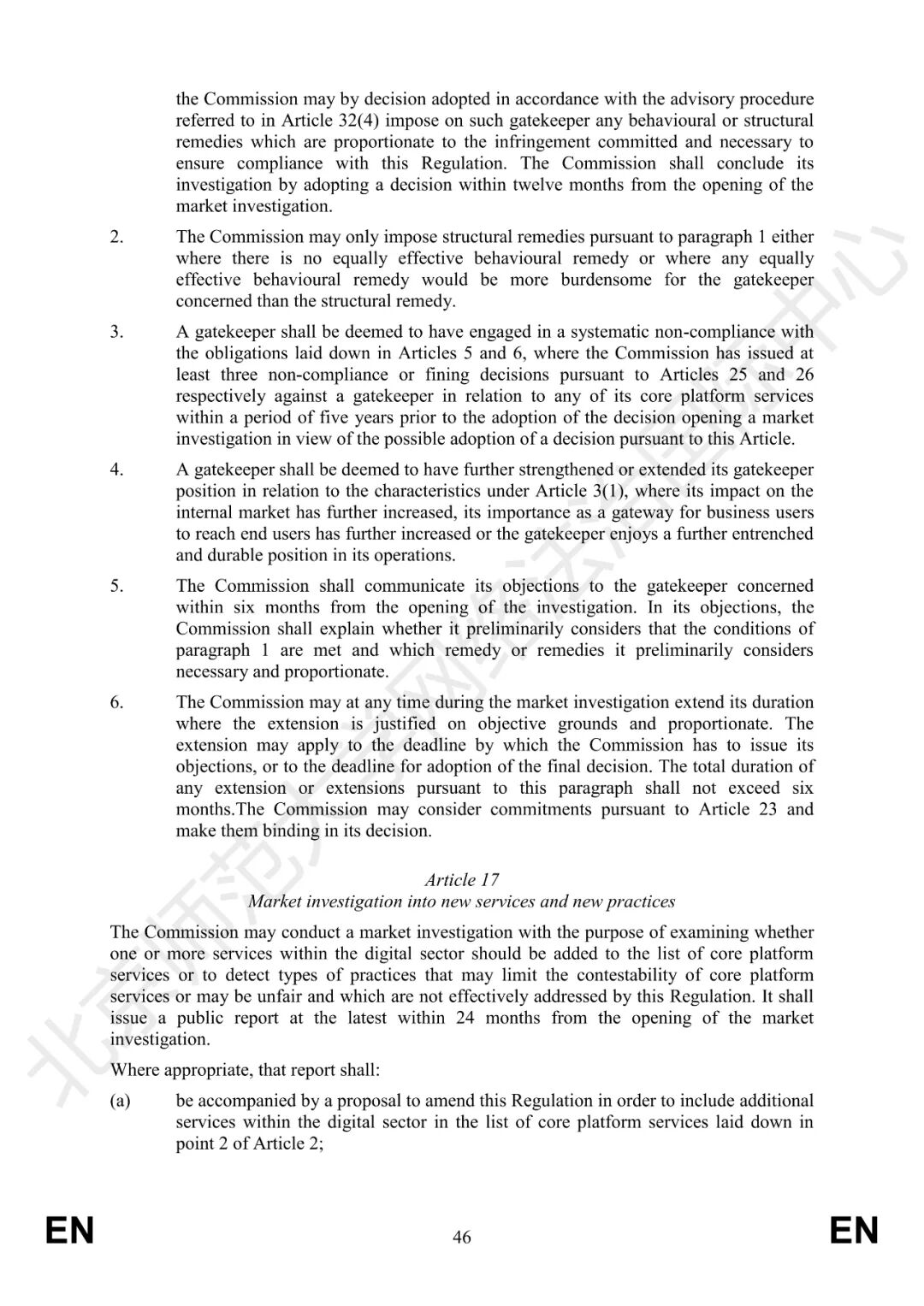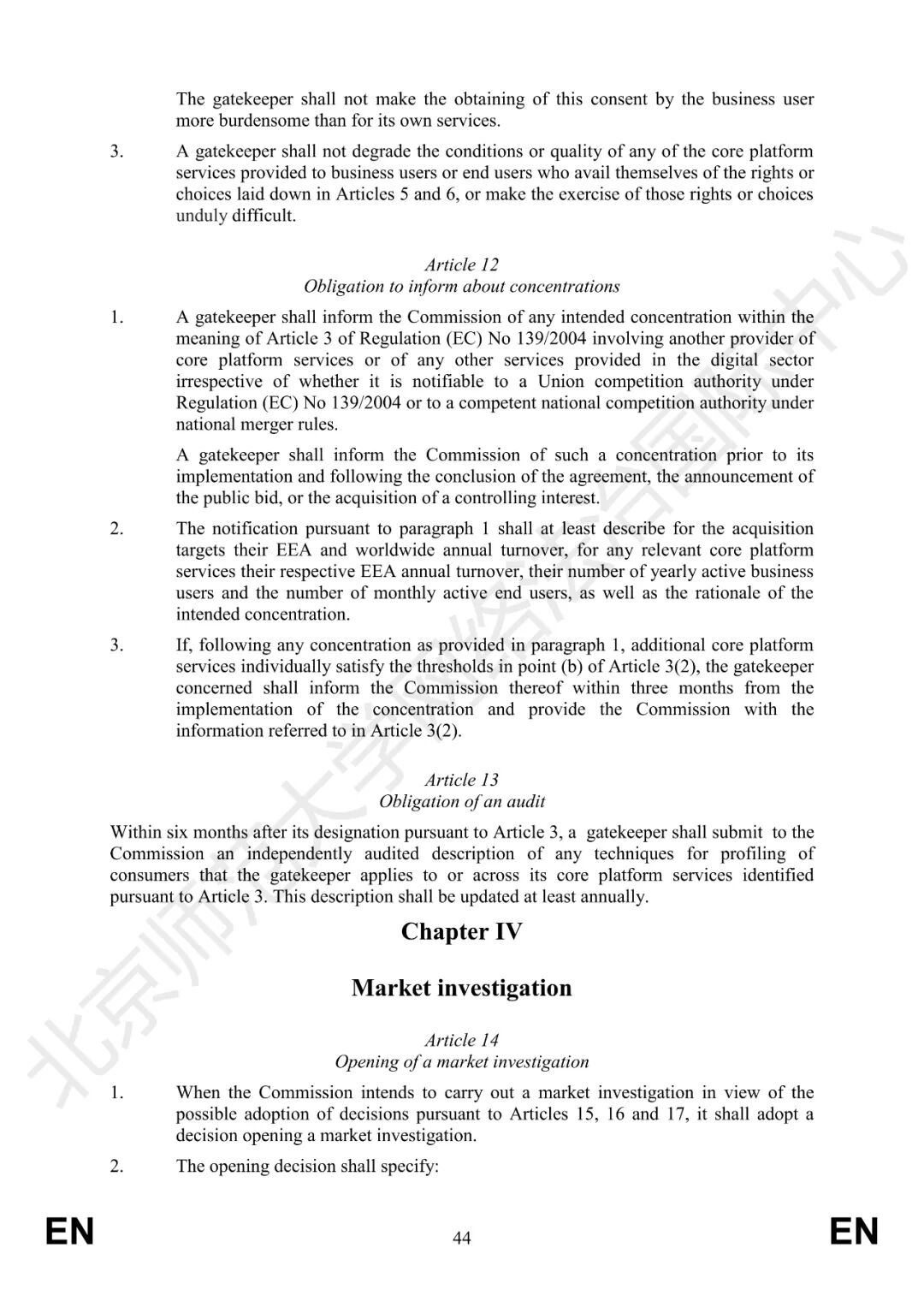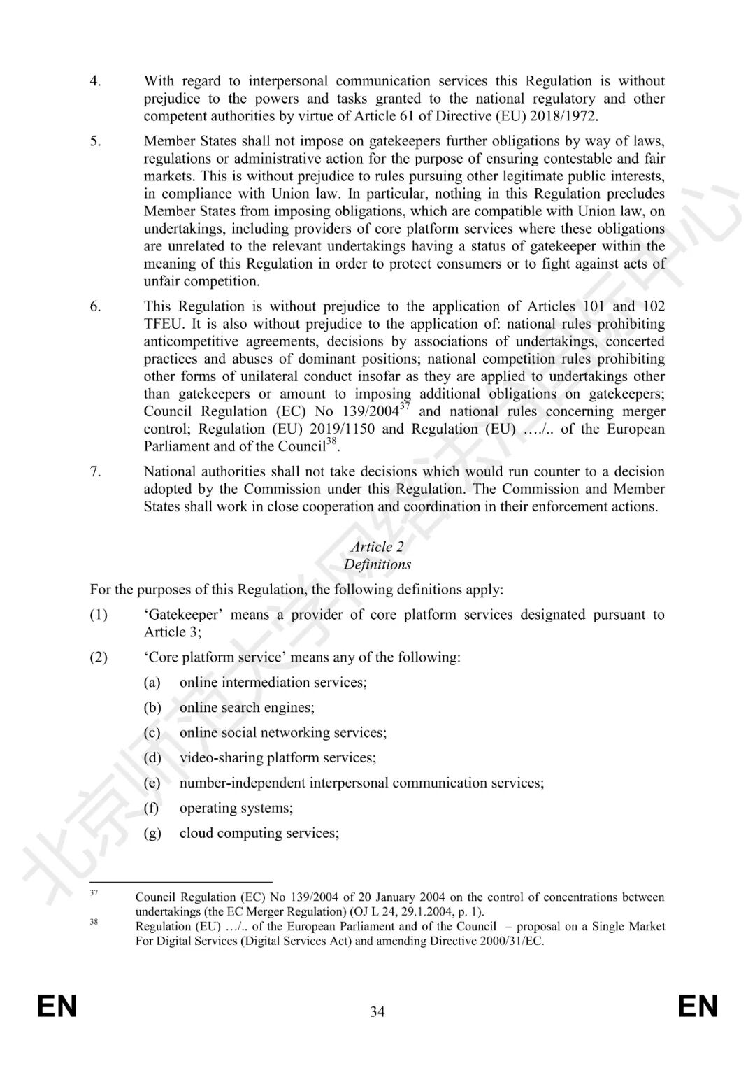 欧盟委员会2020年《数字市场法案》(提案)全文