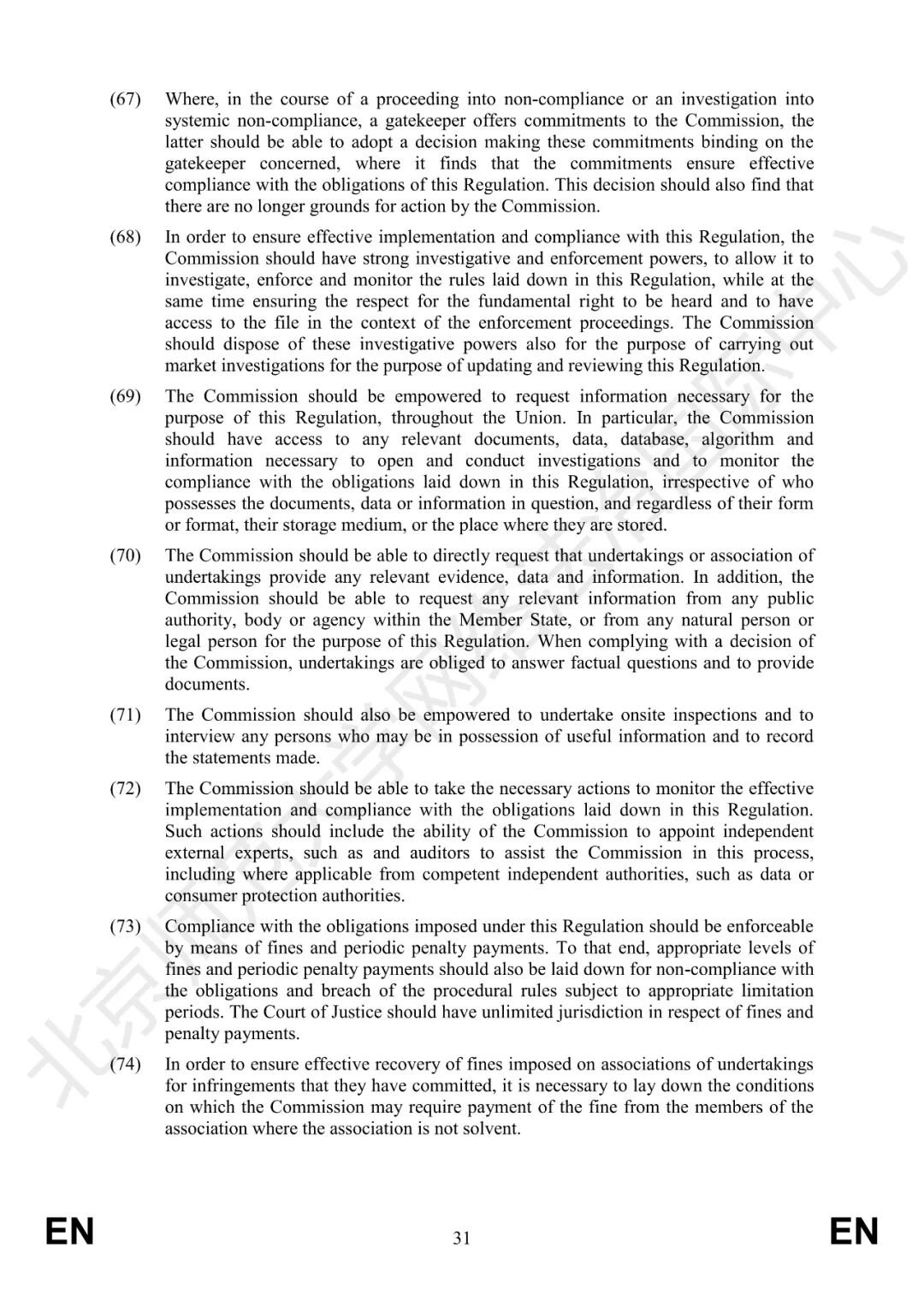 此外,DMA的重点是禁止在线平台把关人的不公平行为,同时提供执行机制,,通过定义量化阈值来确定假定的把关人,禁止不公平的做法,并对不遵守此类规则的行为实施制裁。