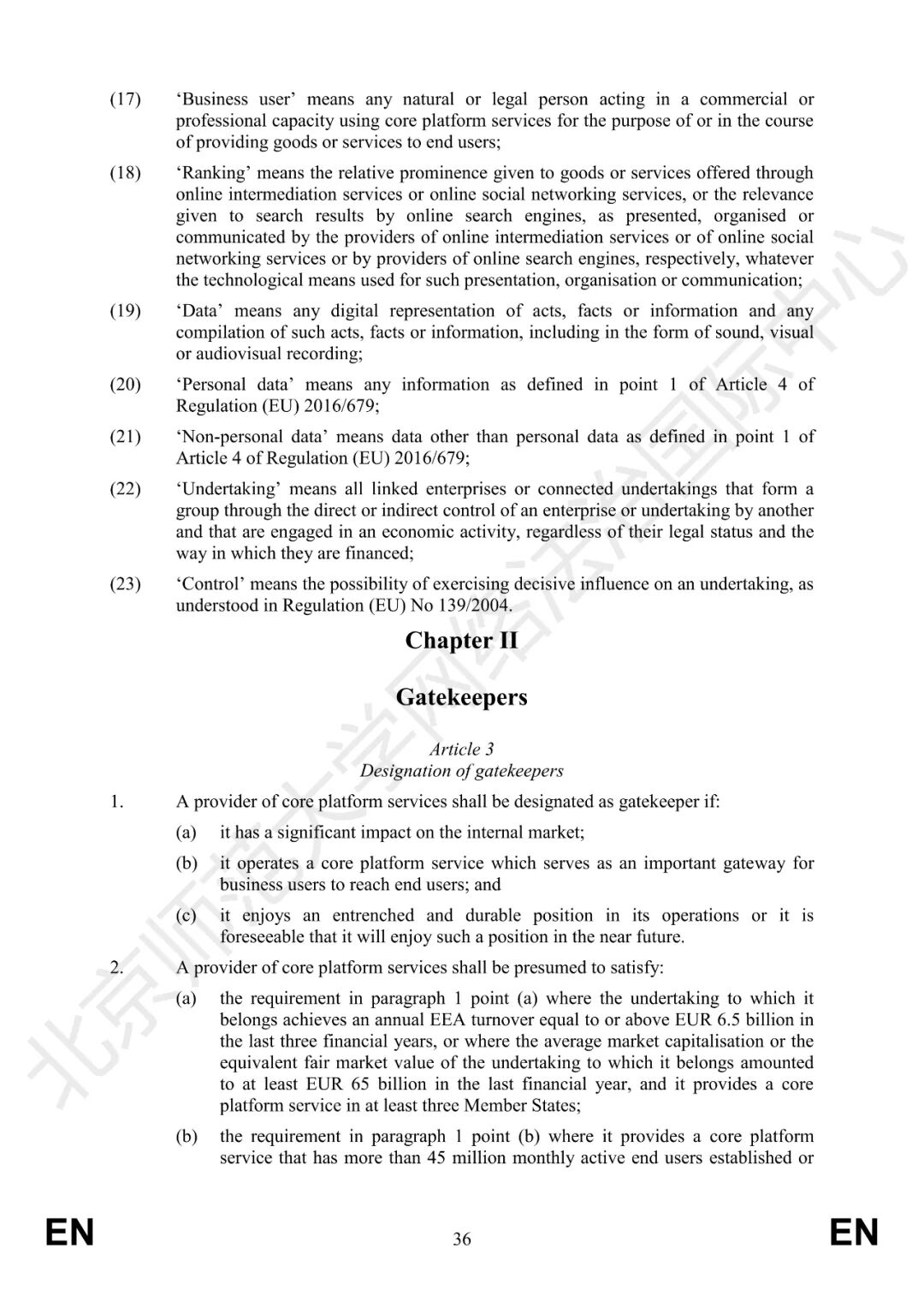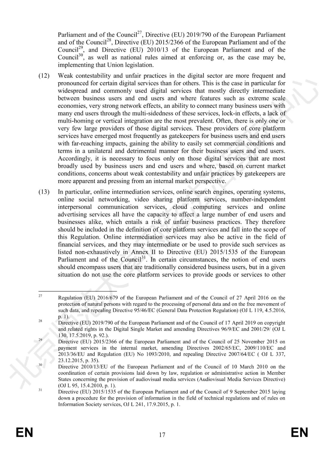 重磅|欧盟委员会2020年《数字市场法案》(提案)全文