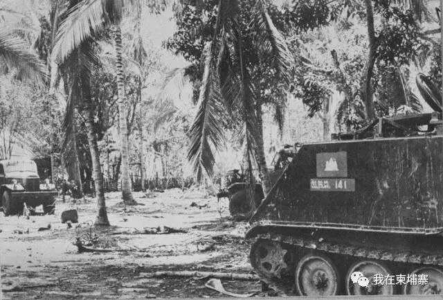 图为1979年越军打败民柬后废弃在柬埔寨椰林中的民柬装甲车。