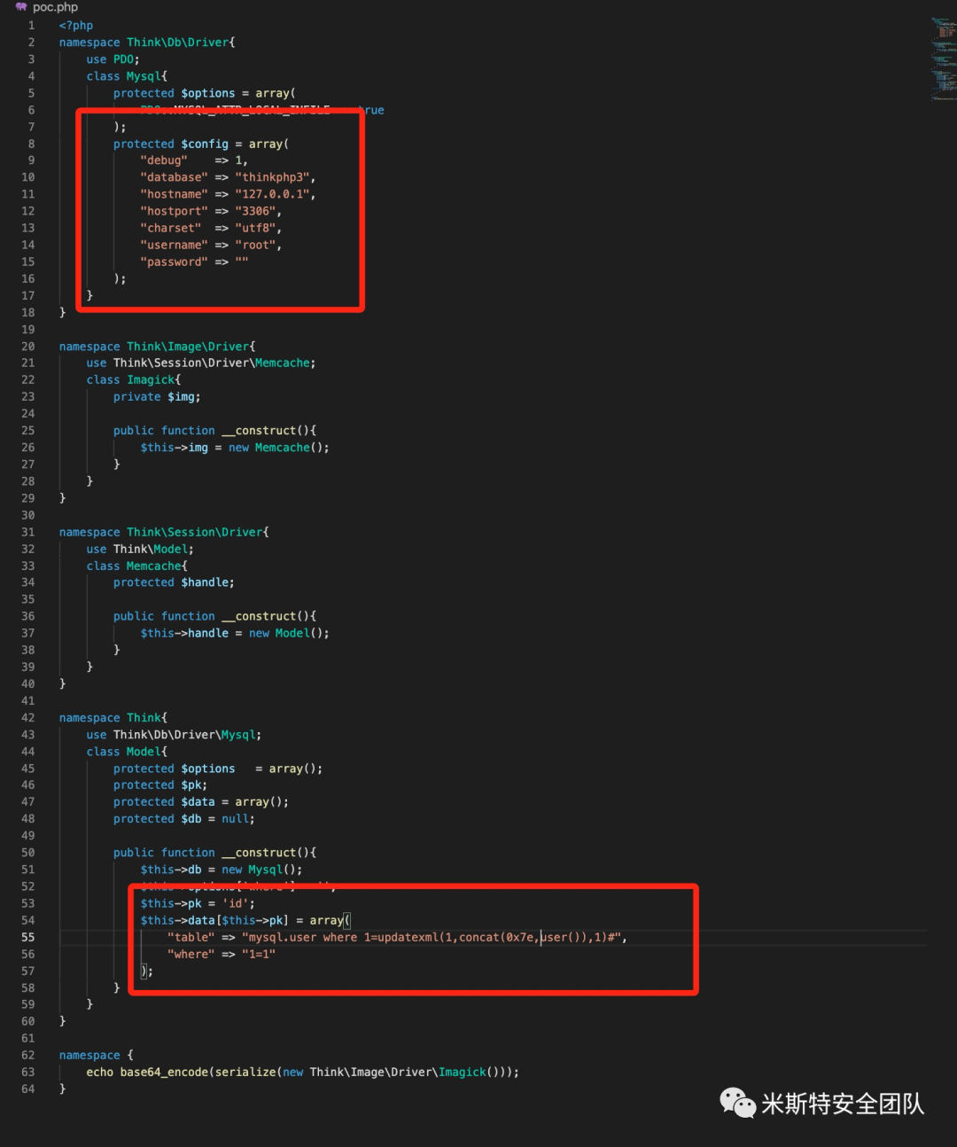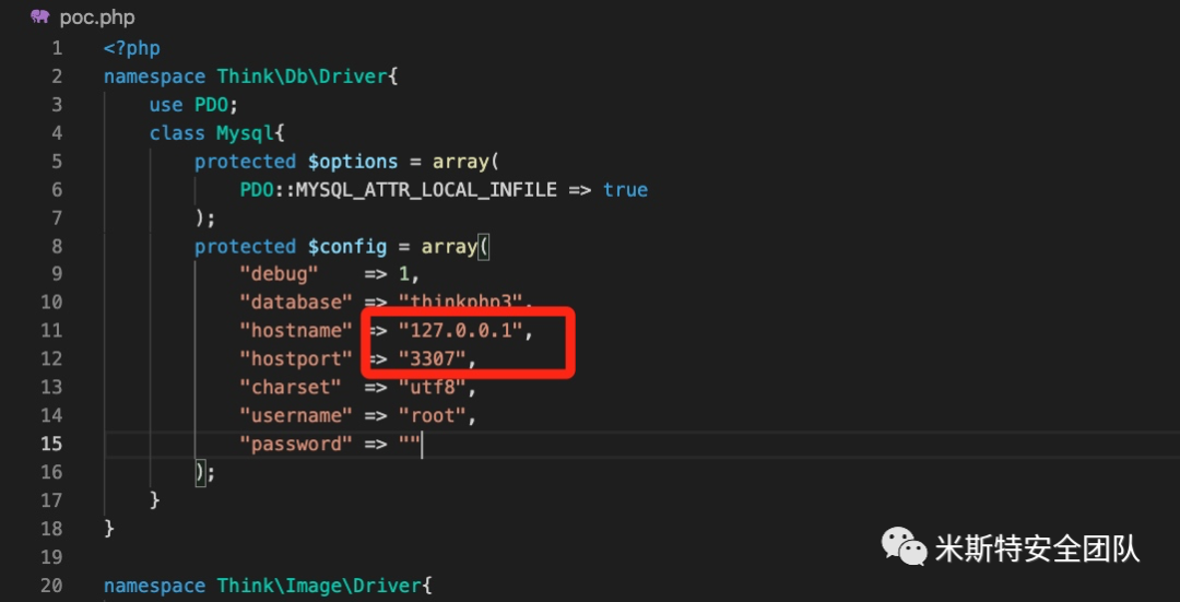 接着将POC中的数据库连接配置改成恶意MySQL服务器的ip和端口。