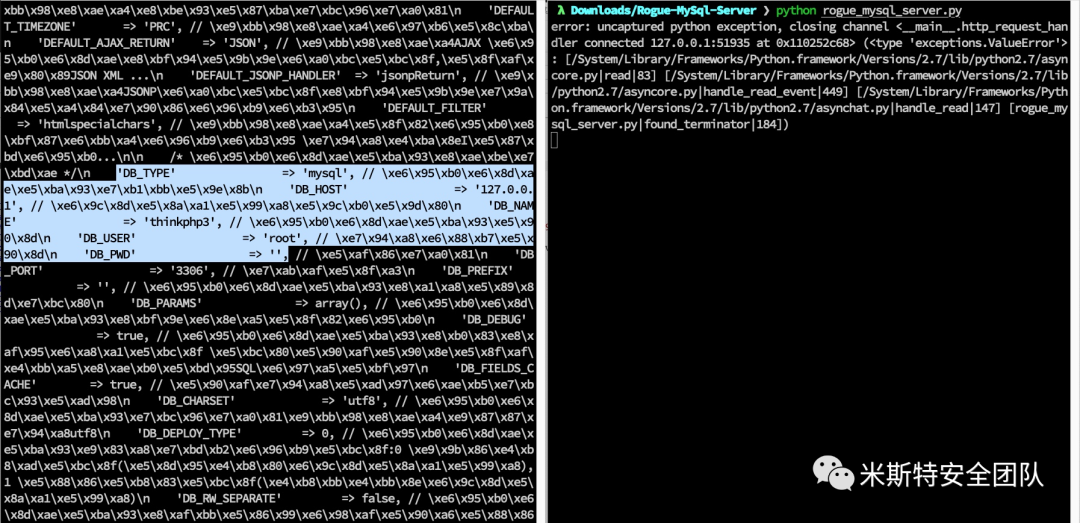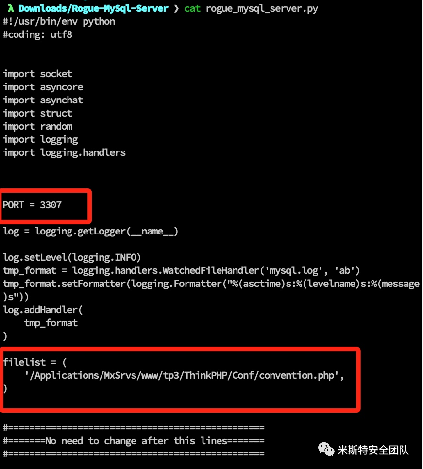 开启恶意MySQL恶意服务端设置读取的文件为目标的数据库配置文件