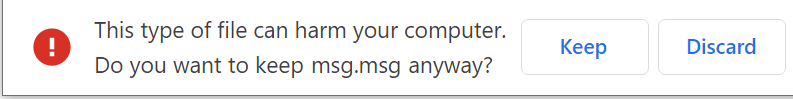 In contrast, Microsoft Edge states that the download “was blocked”, although the same options, named Keep and Delete are available from the … menu on the download item.