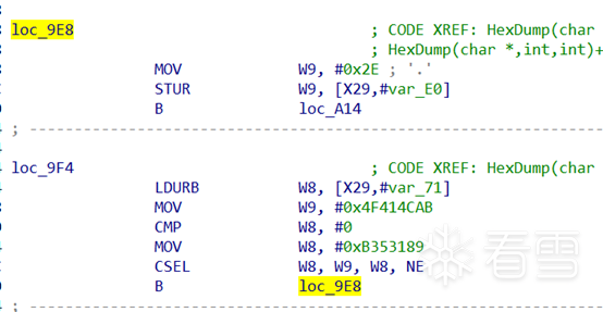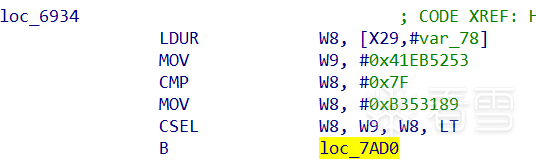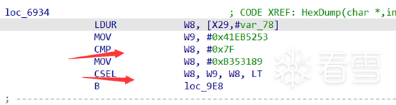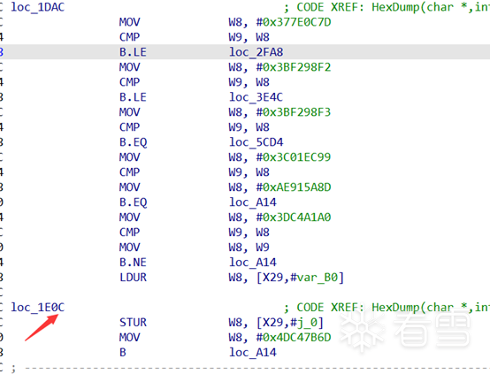 找出对应关系后需要接着还原分支关系,当条件为真时跳到那个块,为假时跳转到那个块。因为每个分支块都会有一条cmp 和csel指令, 如果找到的分支块中没有这两条指令,那么就是漏了真实块。