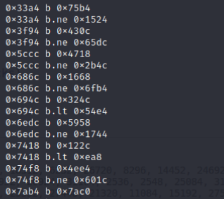 还原他们的关系,只需要在模拟执行时,记录cmp的返回值,和返回值对应的真实块即可,这里会比较麻烦,需要手动找到cmp的地址, 左右值, 和比较关系。