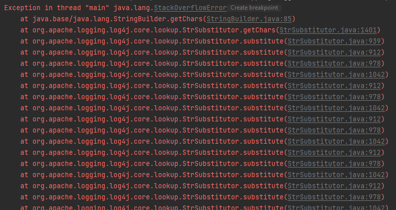 This did not crash the entire application as previously stated about CVE-2021-45046, before escalating its severity to Critical. It merely throws a java.lang.IllegalStateException, thanks to StrSubstitutor’s checkCyclicSubstitution method.